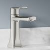 The ARTE centerset faucet by Project Sources offers a transitional look with classic appeal that pairs well with any bathroom decor. The Drop and Lock™ drain included with the sink faucet requires only 3 steps for installation, complete in just minutes. This faucets meet WaterSense® criteria to conserve water without sacrificing performance. Includes ceramic disc valves to assure smooth handle operation and drip-free performance.
