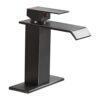This bathroom faucet with Matte Black finish by Project Source features a modern and sleek, yet welcoming design to complement any contemporary décor. It meets WaterSense criteria to conserve water without sacrificing performance. The Drop and Twist drain allows for quick and easy installation in as little as 5 minutes. This product is backed by a limited lifetime warranty.